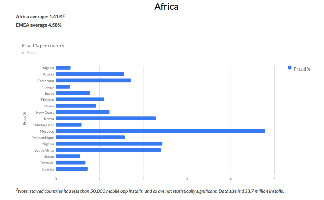 That means that average numbers are misleading. For example, North America appears to have a fairly low average rate of fraud, because there are many, many small to medium-sized apps with small to medium-sized marketing campaigns.