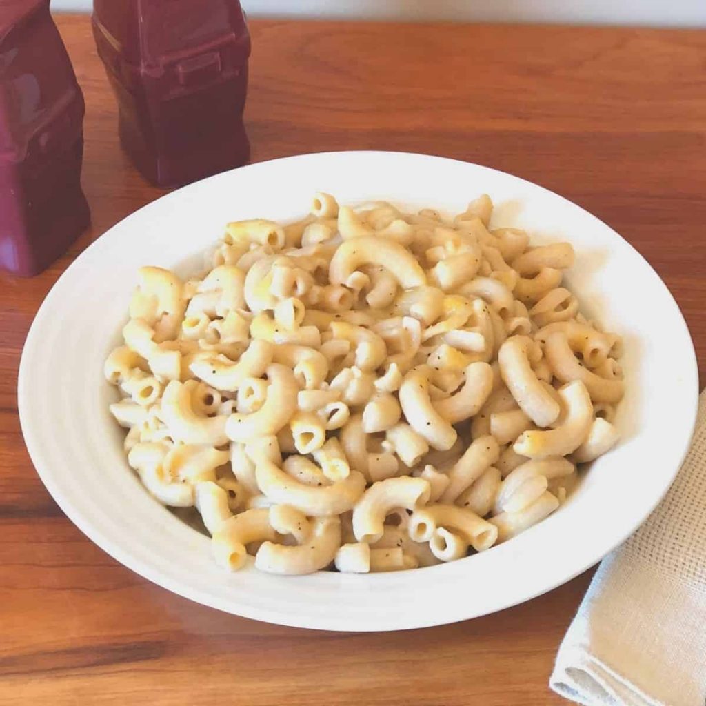I like to use elbow macaroni or shells for this recipe because it reminds me of real mac and cheese! I think Tinkyada is the only gluten free brand I have seen that has these pasta shapes. Tinkyada makes a great gluten free pasta that doesn't get mushy and holds it's shape nicely when mixed with a sauce.