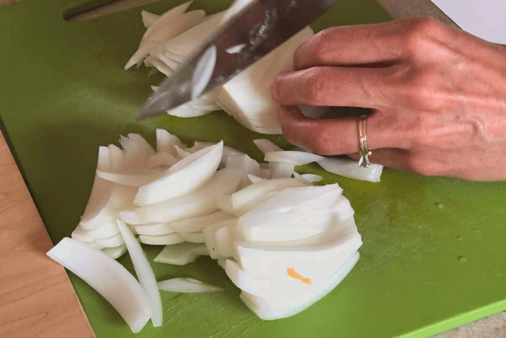 - Onion - I like yellow onions for dishes like this because they sweeten as they cook and hold up nicely in the cooking process. I cut them into strips (like you might do for fajitas) for this dish.